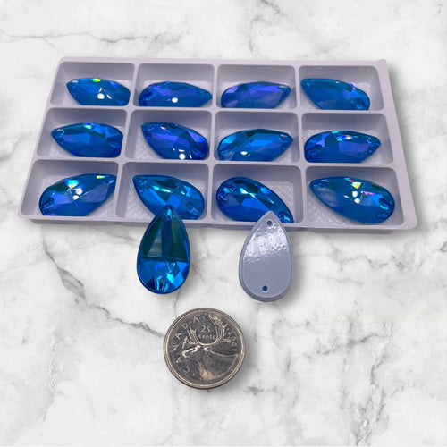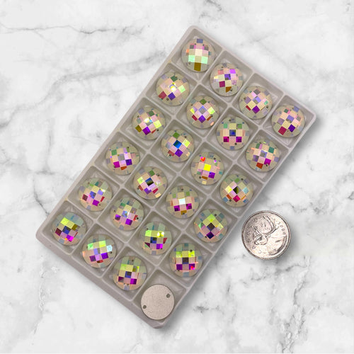 14mm AB Round Rivoli, Sew on, High Quality, Fancy Glass Gem (Sold by the Pair)